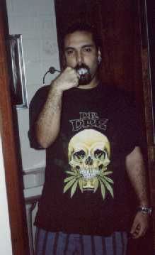 Eugenio pego de supresa escovando os dentes...em seu visual metal